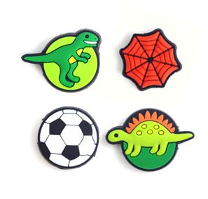 Dette er brillecharms, bestående af to dinosaurer en fodbold og en spindelvæv, der kan dekorere brillen.