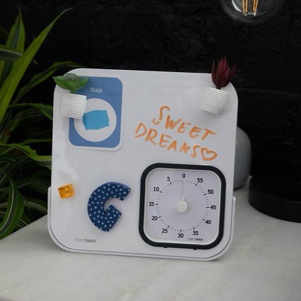 Kombinationen af tid og plan på ét sted giver ekstra støtte og overblik og er ideel til børn og voksne, der har gavn af visuel struktur i forbindelse med lektier, undervisning, møder, pauser og daglige rutiner.