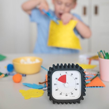 Coveret gør Time Timer MOD mere robust og samtidig mere indbydende at bruge – hvilket kan øge motivation og engagement hos både børn og voksne.