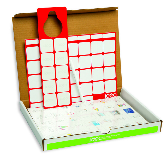 Piktogrammerne kan placeres både på den statiske planlægningsplade (IDEOstatic) og på den dobbeltsidede magnetiske dørhænger. Det betyder, at strukturen kan være fast ét sted – fx på køleskabet – men også nemt tages med, når barnet fx er på badeværelset, på værelset eller på farten.