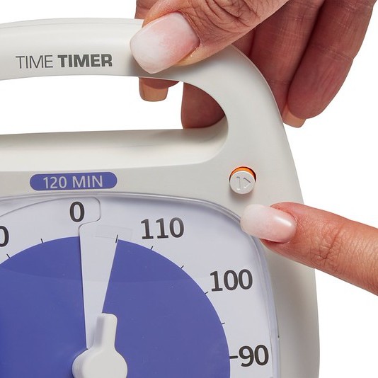 Den nyeste udgave af Time Timer PLUS er opdateret med en praktisk pauseknap, så tiden nemt kan sættes på pause og genoptages igen – uden at nulstille. Perfekt hvis en aktivitet bliver afbrudt undervejs. Samtidig er designet opdateret til et mere moderne og rent udtryk, og urværket er forbedret for endnu mere stabil drift.